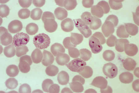 Plasmodium spp (malária), Babesia spp (babebiose), Trypanosoma