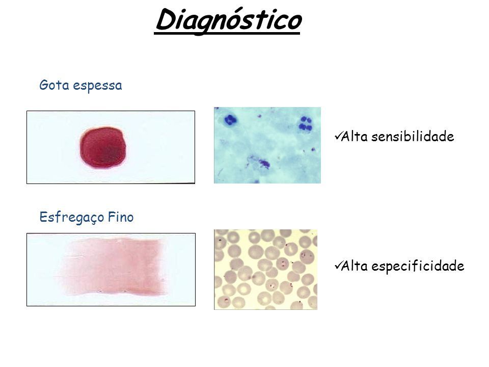 de esfregaços sanguíneos; Espesso ou Delgado.