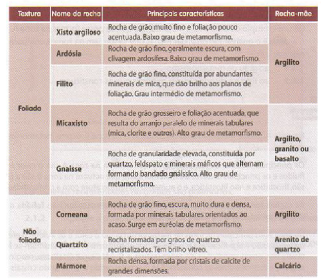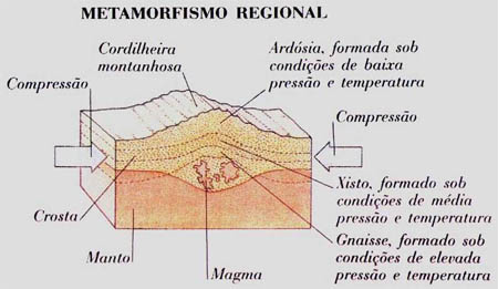 diferentes graus de metamorfismo, sendo considerados o metamorfismo de baixo grau, o metamorfismo de grau intermédio e o metamorfismo de alto grau.