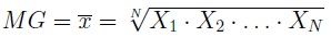 n-enésima raíz. Si en la media aritmética se sumaban los valores para luego ser divididos, ahora
