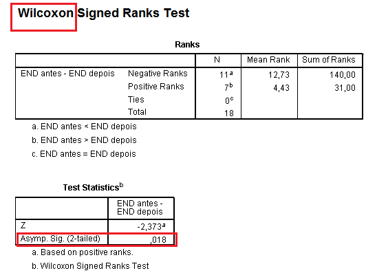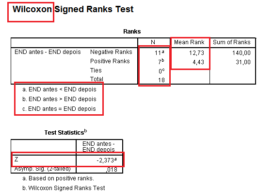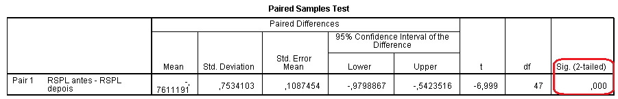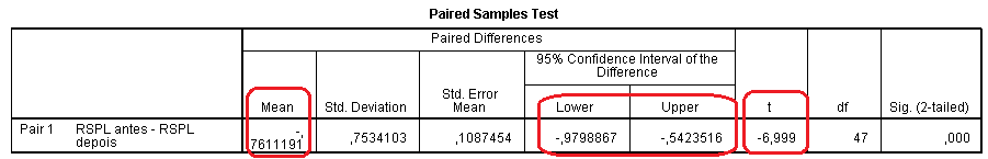 a segunda variável. Se fosse positivo o Depois seria menor que o Antes.