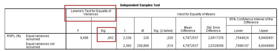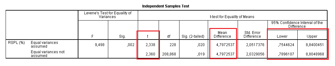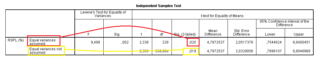 teste de média na linha de "Equal Variances not assumed". Neste caso aceitaremos H1.