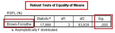diferentes, verificamos o teste de Brown-Forsythe para olhar o resultado, que é um