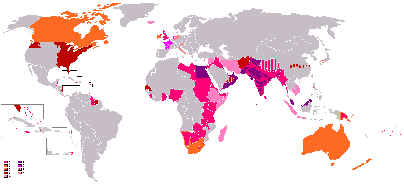 islas del Caribe, Centroamérica y gran parte Sudamérica.