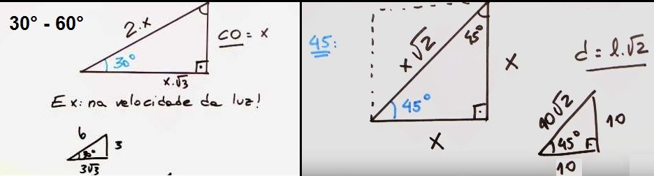 Triângulo retângulo 30-60 e 45 graus, método ninja!