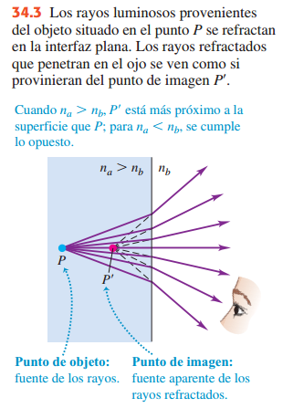 objeto P y son reflejados o refractados, la dirección