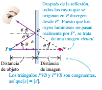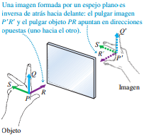 espejo plano es virtual, derecha