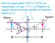 De esta manera, en el caso de un espejo plano el aumento lateral m es