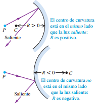 del mismo lado que la luz saliente, el radio de curvatura es positivo; en caso