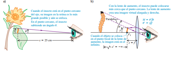 lente de aumento forma una imagen virtual en el infinito. Esta imagen virtual