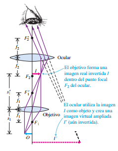 primaria, u objetivo, forma una imagen real, y una lente secundaria, u ocular,
