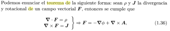 condición suficiente para conocer el campo vectorial en todo el espacio. Asımismo, el campo puede descomponerse