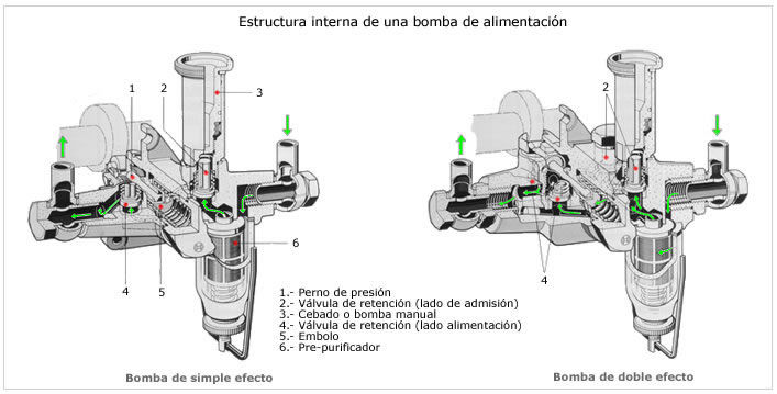 bomba de inyección a través de un filtro de combustible.