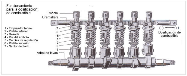 La bomba de inyección tiene tantos elementos de bombeo como cilindros el motor. Cada
