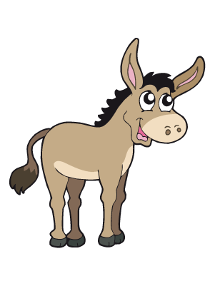 Donkey: the domesticated animal, having long ears and a loud bray.