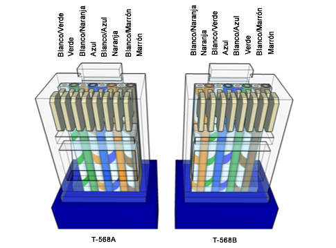 Hay 2 formas de ponchar con la norma T-568A y T-568B