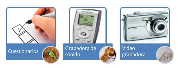 Cuestionarios, grabadora y camara de video