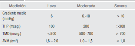 moderada y severa dependiendo del área valvular y