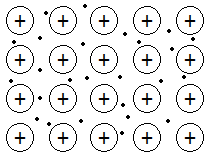 1. En este enlace todos los átomos envueltos pierden electrones de sus capas mas externas, que se trasladan más o menos libremente entre ellos, formando una nube electrónica (también conocida como mar de electrones)