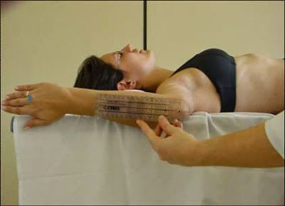 ângulo inferior da escápula move-se lateralmente e a cavidade glenóide