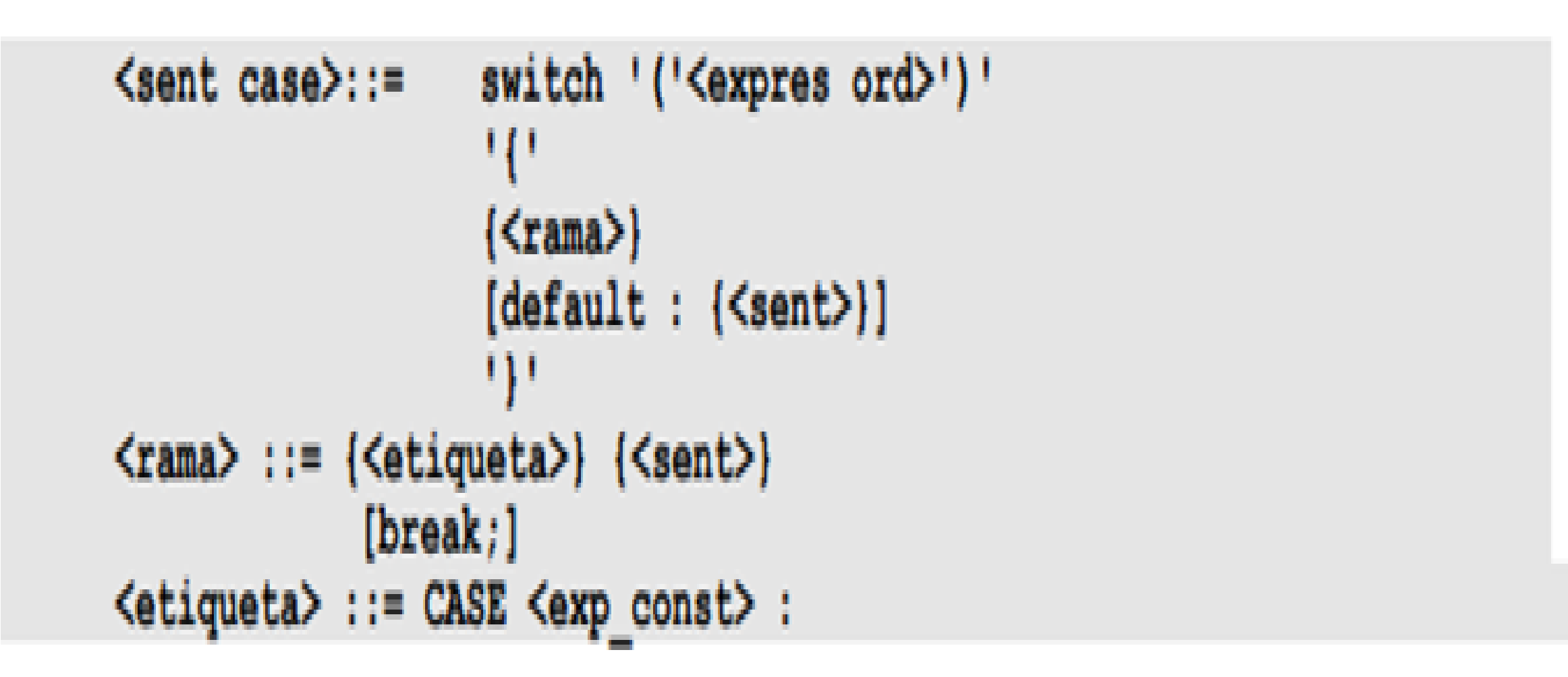 La notación BNF de esta sentencia es la siguiente: