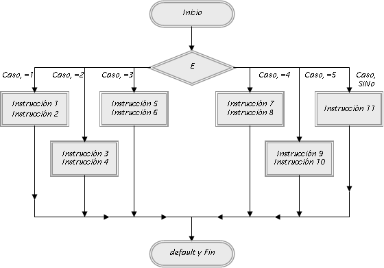 variable entraría en uno de los casos definidos o en el caso por defecto.