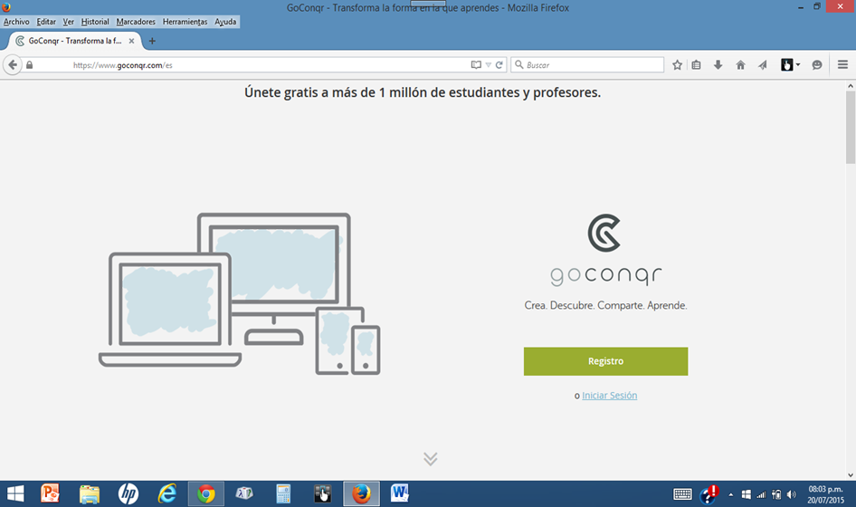 Si ingresamos "GoConqr" en la casilla de búsqueda del navegador encontraremos fácilmente la página para acceder a ella sin tipear la URL.