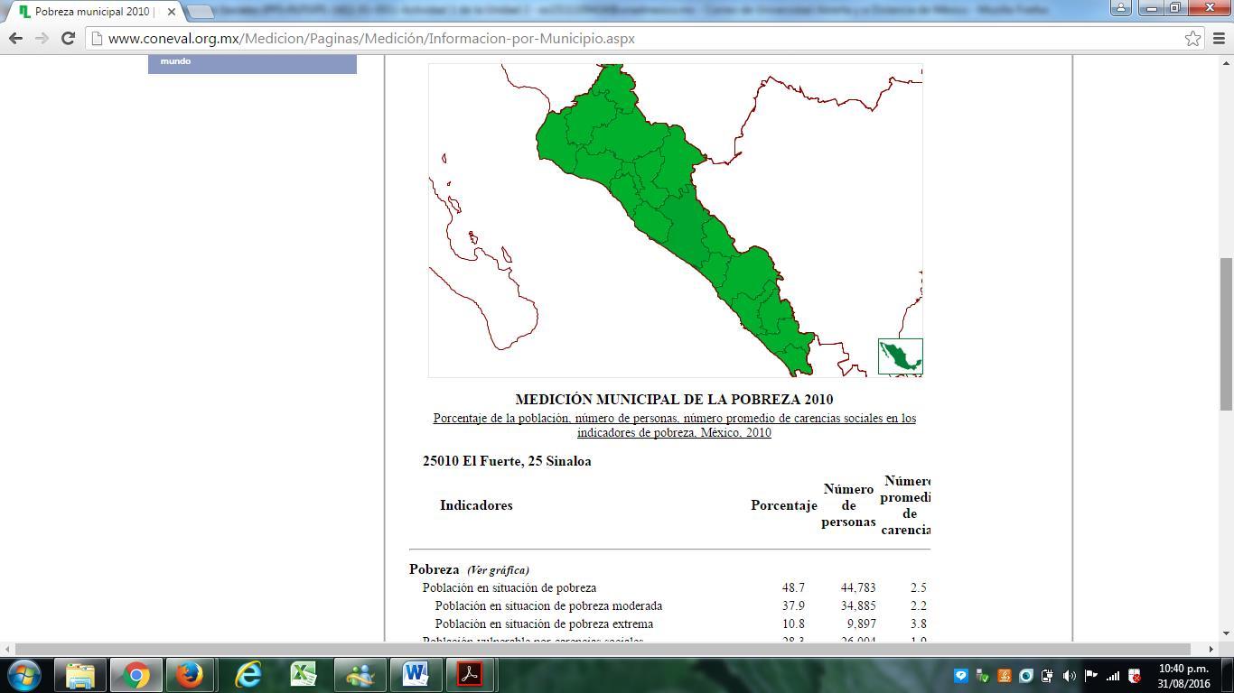 Esto nos vincula con la información de la medición de la pobreza a nivel municipio 2010