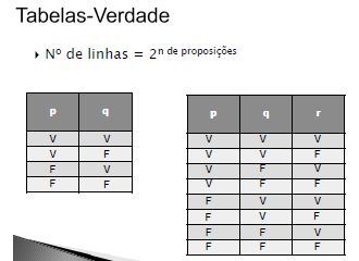 Linhas da Tabela verdade: 2 n de proposições. (considera somente proposições distintas)