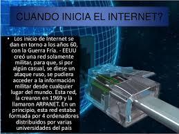 es una red de redes que permite la interconexión descentralizada de computadoras a través de un conjunto de protocolos denominado TCP/IP. Tuvo sus orígenes en 1969, cuando una agencia del Departamento de Defensa de los Estados Unidos comenzó a buscar alternativas ante una eventual guerra atómica que pudiera incomunicar a las personas. Tres años más tarde se realizó la primera demostración pública del sistema ideado, gracias a que tres universidades de California y una de Utah lograron establecer una conexión conocida como ARPANET