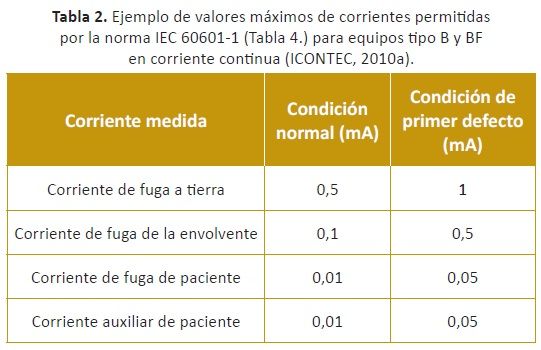 VALORES MÁXIMOS DE CORRIENTE PERMITIDA POR LA NORMA IEC 60601-1