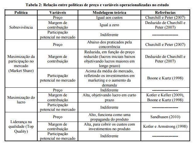 Políticas de preço identificadas