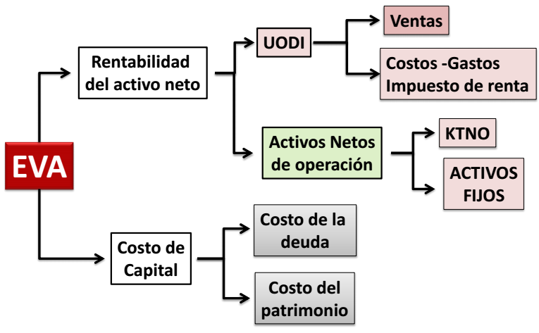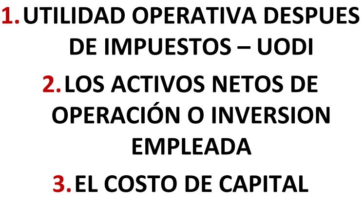 Diferencia entre La utilidad operativa después de impuestos Y El costo financiero que implica la utilización de activos por parte de la empresa
