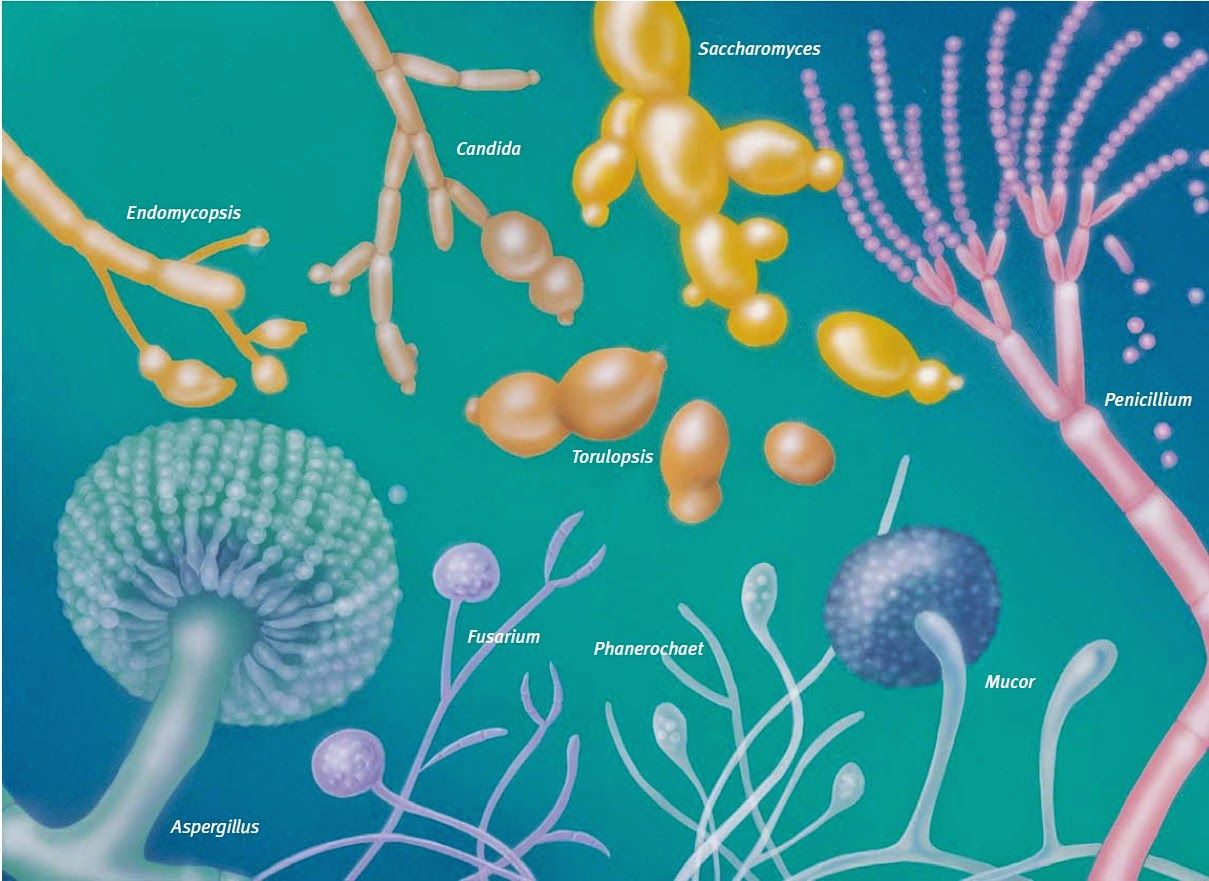 como virus, bacterias, levaduras y mohos que pululan en
