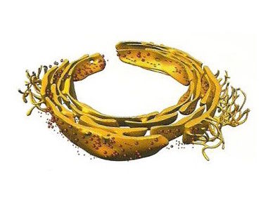 Dividido en R.E. Rugoso (con ribosomas) y R.E. Liso