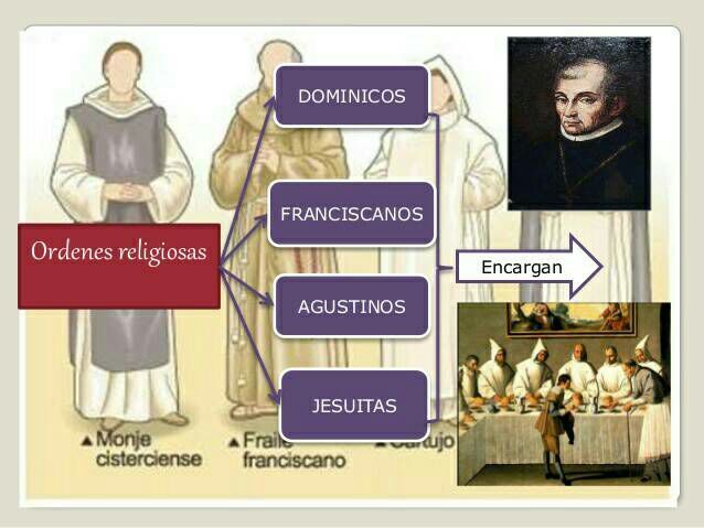 Iglesia católica, franciscanos, dominicos y agustinos.