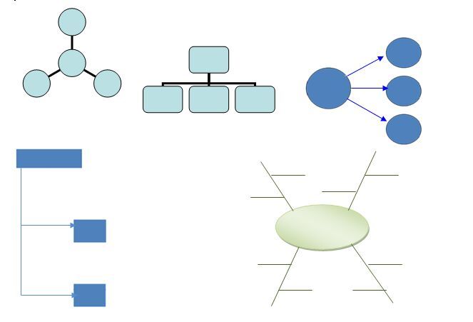 causa y efecto, diagramas de Venn, diagramas de flujo.