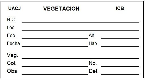 herbario, en esta se escriben los datos