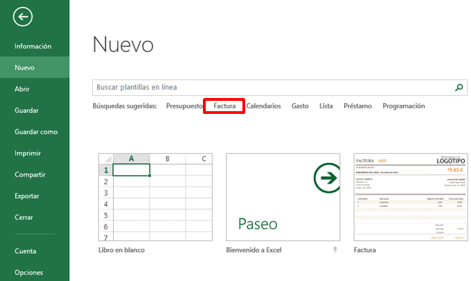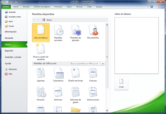 Es posible crear un nuevo libro a partir de una plantilla.