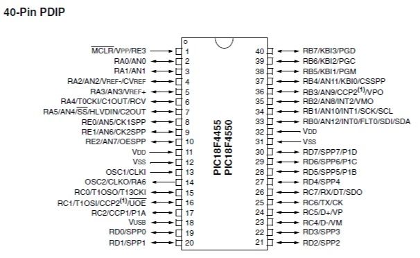 Inclusión de los periféricos del PIC 18F4550.