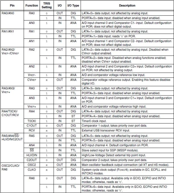 Configurar RA0 como entrada) ; en la tercera línea se configuran RA1 en el puerto A como entrada