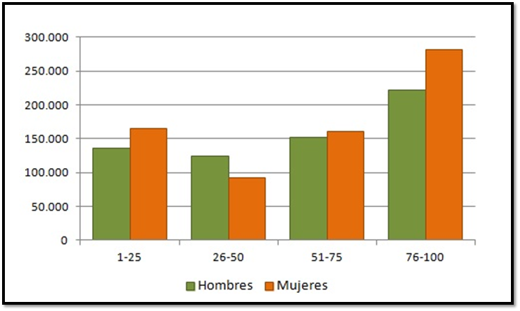 relativa) mediante la altura de la barra la cual es