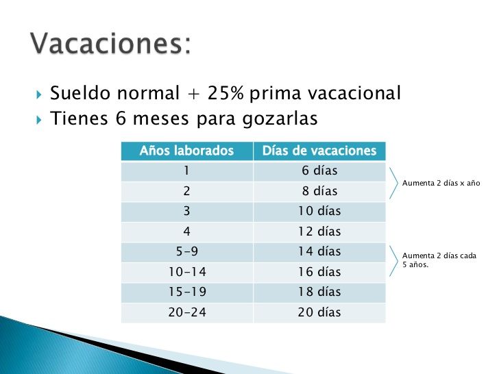 aumentarán dos días por cada año laborado hasta llegar a 12. A partir de ahí se suman 2 días cada 5