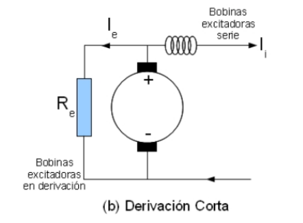 El devanado serie está conectado directamente al inducido y el de derivación a los bornes de la máquina.