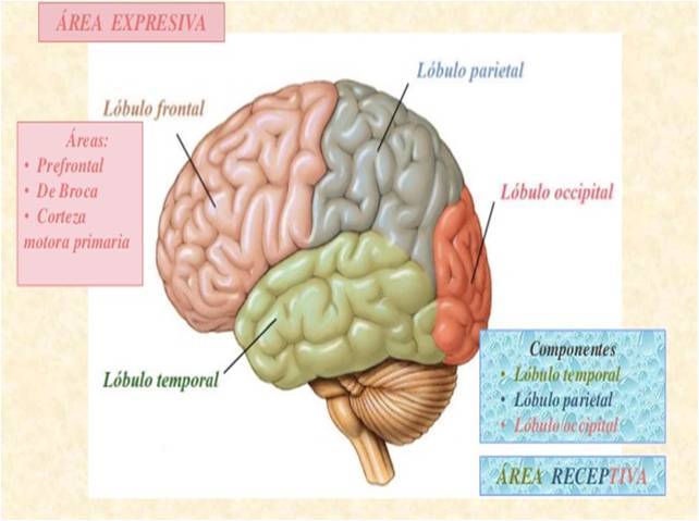 3. AREA RECEPTIVA: Esta situada en la zona posterior del córtex e incluye los lóbulos parietal temporal y occipital. Es la responsable de la regulación del lenguaje comprensivo.