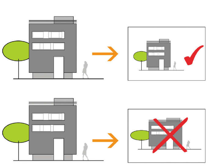 vista normal completa y otra parcial. Si el elemento es oblicuo