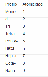 Dichos prefijos nos indican la atomicidad que posea la molécula, o lo que es lo mismo, el número