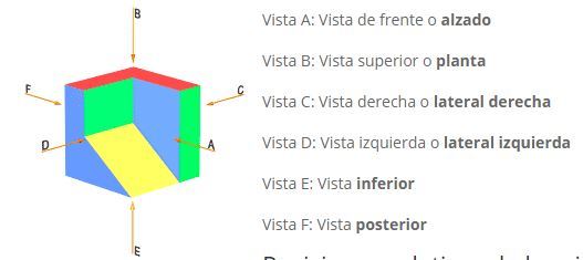 representación del alzado planta y una vista lateral. En piezas simples bastará con una o dos vistas. Cuando sea
