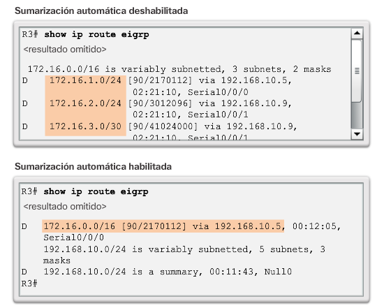 Para habilitar la sumarización automática de EIGRP, use el