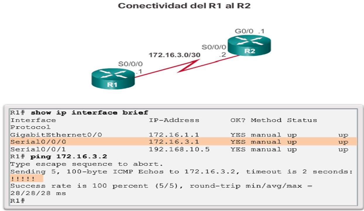El R1 muestra conectividad al R2, y